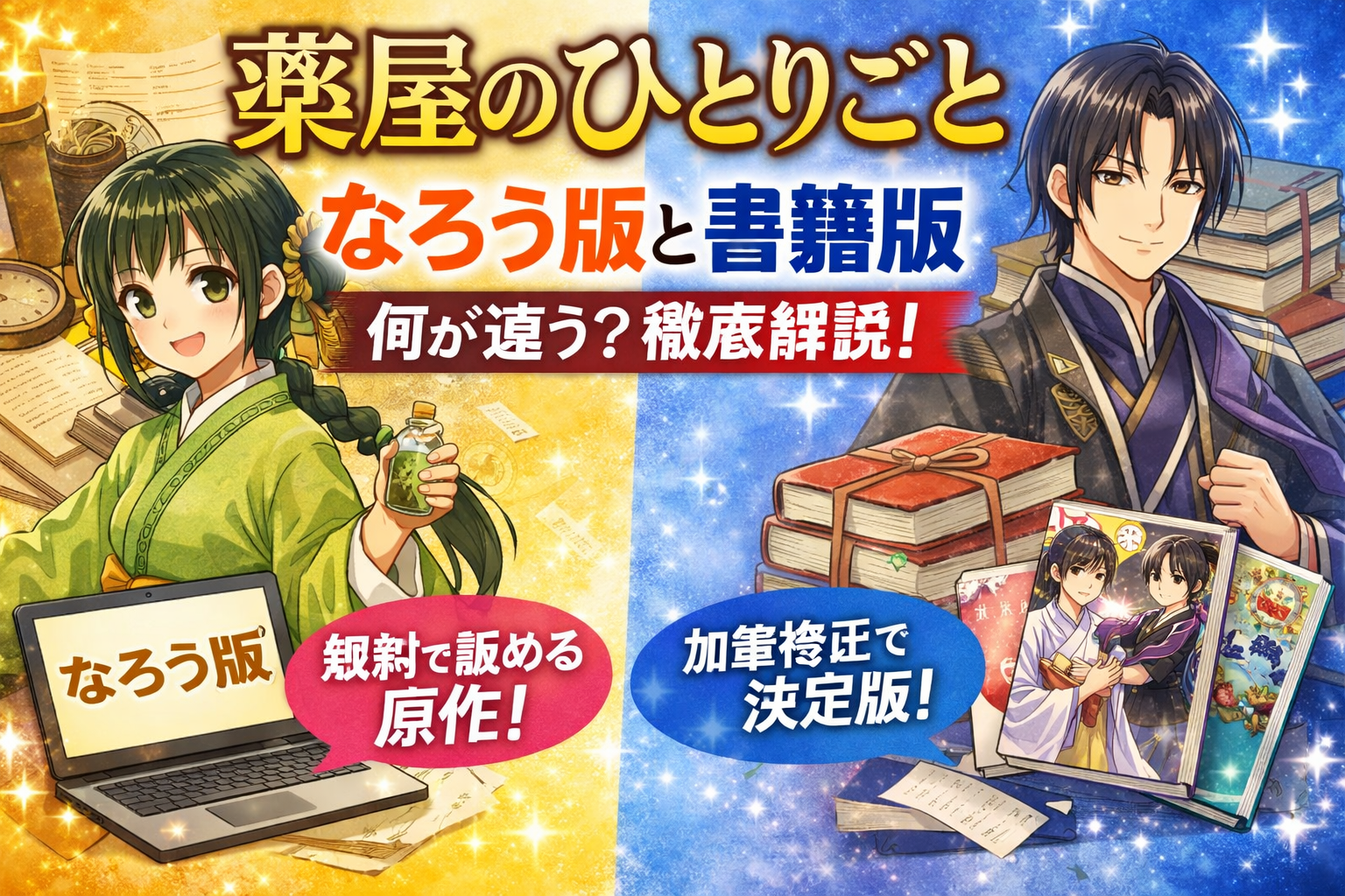 この記事では、初心者向けに「薬屋のひとりごと 小説はなろう版と書籍版で何が違う?」という疑問に答えながら、それぞれの特徴やおすすめの選び方まで徹底解説します。