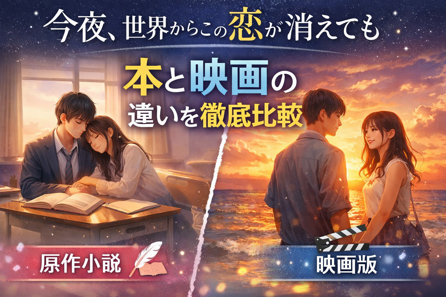 この記事では、「今夜、世界からこの恋が消えても 本(原作小説)のあらすじ」と「映画との違いを比較」しながら、それぞれの魅力やおすすめポイントをわかりやすく解説します。